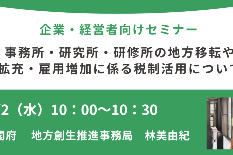 内閣府登壇!【企業・経営者向け】事務所・研究所・研修所の地方移転や拡充・雇用増加に係る税制活用について_20241002(シリーズセミナー)
